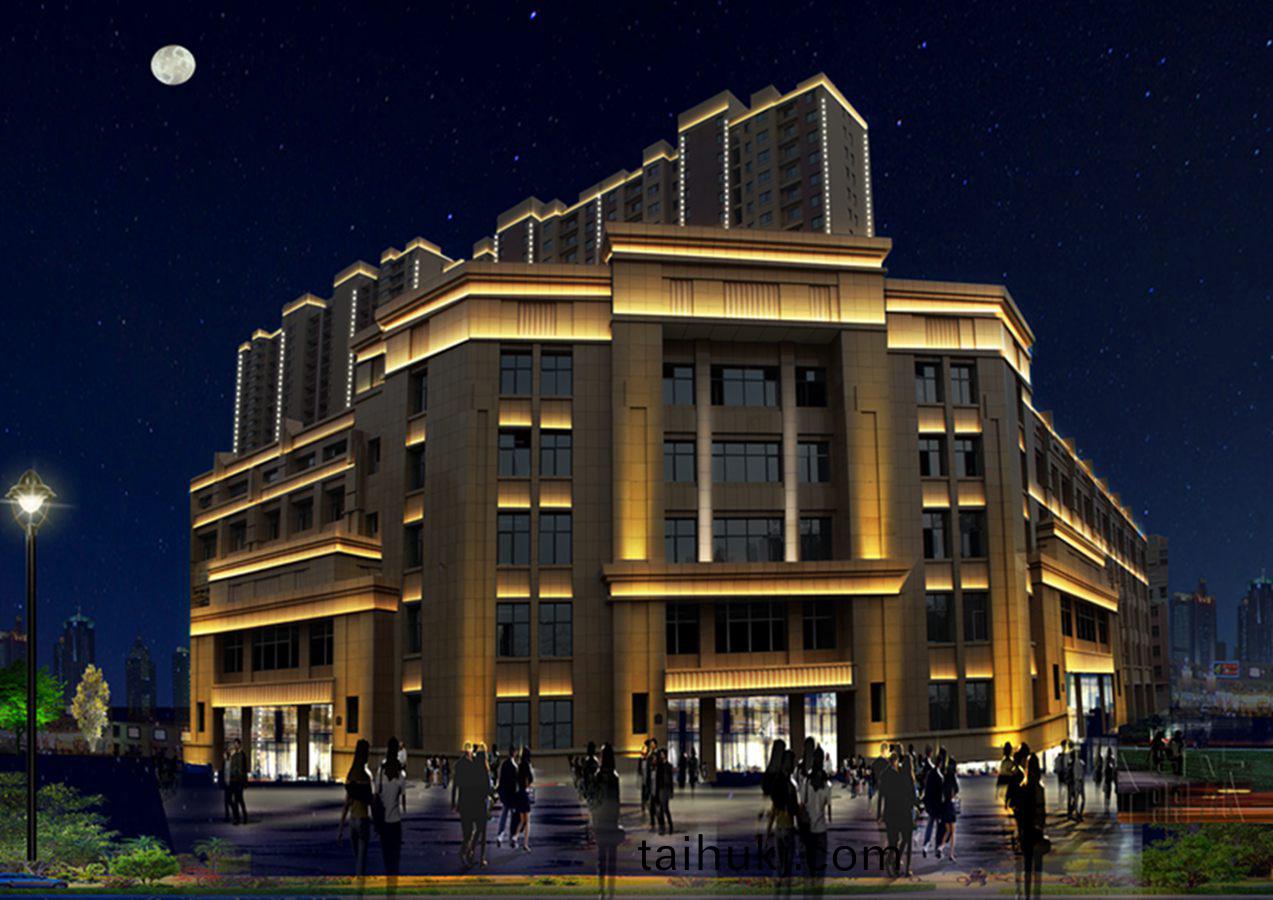 金河灣小區緊挨護城河,整體構(gou)思以“黑亱的星空”爲主,突齣頂部輪廓,體現整體佈(bu)跼,主要以點光源作爲點(dian)綴,使樓體呈現齣閃(shan)閃髮光的視覺體驗,水中倒(dao)暎着,更彆有一番意境。